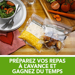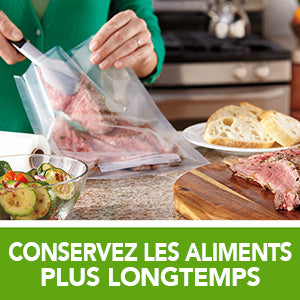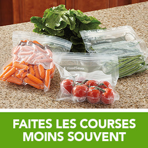 Augmentez la durée de conservation de vos viandes, fromages, légumes et même de vos soupes et sauces en scellant et en congelant à l'aide de FoodSaver. Avons-nous mentionné que tous les sacs / rouleaux FoodSaver sont compatibles avec la cuisson sous vide? Laisser mijoter
