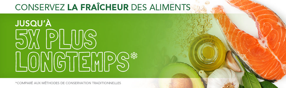 • Conservation des aliments conserve les aliments frais cinq fois plus longtemps* et évite les brûlures de congélation afin de préserver vos restes sans en altérer la qualité ni le goût